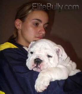 I am soooo happy that I finally have my new baby. I adopted a bully from Dmitri about 2 months ago and it was the best thing ever! My new baby Ava (former "Lorencia" is now getting bigger and stronger by the day. She was about 10 weeks old when we got her and now about 18 weeks. She is such a ball of fun minus all the chewing. She's pretty good though...Im very satisfied in the way you guys at Elitebully went about this process. You made it so easy for me and she is very good with preparation (training) the puppy for our new home. I'd like to say that Dmitri is such a professional and a wonderful person and I would recommend him any day! He raises his puppies very well. Thank you for everything Dmitri!